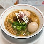 我中午去了一家某家被某家拉面杂志刊登并且现在很受欢迎的店。我好像在它开业的时候去过一次。这次我点了蛤蜊拉面加煮蛋作为配料。外观上是浓郁的酱油汤,上面摆放着切碎的竹笋、白葱和青葱,还有整齐地摆放着蛤蜊。最近我经常看到贝类拉面,而且我觉得它们更多的是以咸味拉面为主,所以我对贝类加咸味的温和口味有一些印象!但是这家店的是酱油拉面,酱油味浓郁,所以贝类的味道并没有那么突出,但是整体口味平衡,非常好吃。吃得很满足,谢谢。