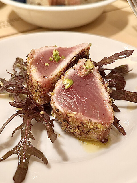 这是一家我们家人和朋友多次光顾过的西西里料理餐厅。以前按半年分为鱼菜月和肉菜月,还有午餐菜单上的鱼、肉菜类别来提供菜品,但现在不再这样分了。详细信息请搜索"Il PISTACCHIO da Saro的博客",里面有更新的菜单和空座情况。无论是肉、鱼、蔬菜还是餐后咖啡和甜点,每次都让人满意。不仅菜品美味,而且店内防疫措施完善(提供二楼洗手间消毒等),所以现在这个时期也可以放心愉快地用餐。带任何人来这里都不会错,是一家绝佳的餐厅。