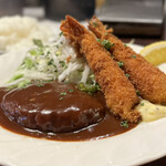 在具有复古氛围的店内享用洋食午餐。汉堡肉多汁,淋上了浓郁的红酱汁,口感较为嫩滑。炸虾酥脆可口。白玉米汤浓郁且相当美味。厨师的服务态度很好。在平日的12点过后,只有一位顾客在用餐,用餐期间也只有一位。只提供吧台座位,所以一个人也容易入座,但午餐价格较高。用餐愉快。
