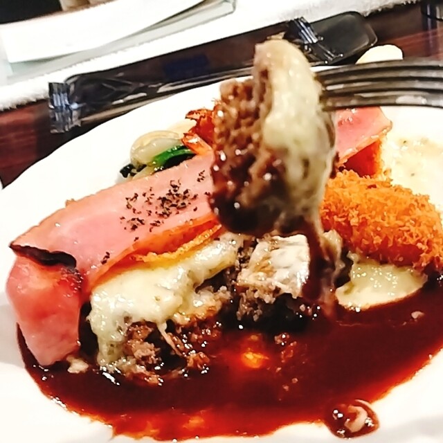 在工作途中,我在这里午餐,大约在平日的下午1:30左右。餐厅内约五成客满,有一些欧美客人点了汉堡和鲷鱼奶油可乐饼,价格是2,400日元。前菜的土豆汤味道有点淡,清爽可口。汉堡是柔软口感的类型,伴以优雅而浓郁的红酒汁,非常美味。因为份量较小,我一度担心是否够吃,但因为是午餐,所以足够了。鲷鱼奶油可乐饼是一种创新的味道,很不错。考虑到午餐的价格,可能有点少量。