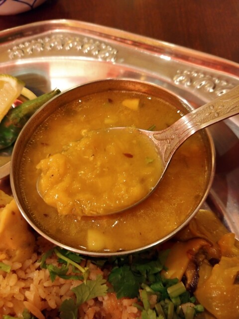 上次在"麵屋百福"用餐,這次來到了主店。限定菜單的塔魯族達爾巴特已經賣完,所以我點了達爾巴特特餐。很感激他們用鴨肉來做咖喱的醬料,味道當然是無可挑剔的。各種香料和配料混合在一起,奏出了美妙的和諧音樂。真好吃!咖喱剩下了一點,所以我又加點了飯。份量相當多,我吃得非常飽。雖然價格有點高,但我很滿足。