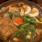 这家创立于昭和36年的味噌煮込み乌冬面,以名古屋正宗的八丁味噌为特色。它会冒着噼噼啪啪的声音被端上来,味噌煮込み乌冬面是招牌菜。点餐时,有味噌煮込み乌冬面套餐和其他饭菜选择。配料包括鸡肉、鱼板、油炸豆腐、葱、生鸡蛋。滚烫的陶瓷锅激发了食欲。八丁味噌的香气在生鸡蛋中弥漫,用筷子搅拌均匀。首先品尝汤。这汤真是美味。八丁味噌的风味和鸡肉的鲜美相结合,浓郁而充满风味。然后吃面条。这款扁平面条也非常美味。它们有坚韧的嚼劲,与面条的口感和八丁味噌的风味相得益彰。面条、汤都是绝妙平衡的美味。当然,其他饭菜也很美味。这家餐厅对面条和汤都非常讲究,每种食材都得以充分发挥,成为一道非常特别的美食。只有这里才能品尝到。这家餐厅是一家令人满意的餐厅之一。我认为不需要其他解释。首先,我希望您来品尝一下。