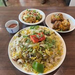 今天的特色菜是土豆拌饭,辛迪拌饭。不仅有土豆,还有青芒果酱。香料也不同于普通的拌饭,使用了绿豆蔻而不是黑豆蔻。而且,今天的拌饭是用羊肉做的马通辛迪拌饭。非常辛辣,浓郁,非常美味。香料的香气也很好。第一口就能感受到从口中到鼻子的香气,是一次绝佳的体验。今日特色咖喱菜有牛肉哈林和鸡肉白咖喱。鸡肉白咖喱不辣,使用了大量牛奶和奶油,带有香料烹饪的感觉,比普通的炖菜更符合我的口味。我一口气吃光了(笑)。牛肉哈林是用牛红肉、扁豆、大麦和小麦慢炖而成的菜肴。味道很浓郁,我还淋在拌饭上享用,与拌饭的搭配非常美味。