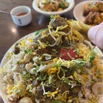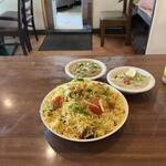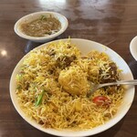 这一天是因为休假出差的调休休息日。尽管如此,我没有足够的钱去远足。而且也没有足够的钱去豪华用餐。在这种情况下,这个地方是最可靠的选择。可以吃得饱,美味,价格也合理。合理的价格因人而异,我认为与吉野家或麦当劳等相比是毫无意义的。以此为基准来看,大阪清真餐厅的价格相对较高。如果想要尝试正宗的南亚菜肴,这里的性价比相当高。我认为大阪清真餐厅仍然是最佳选择。那天早上11:00来拜访。这个时间是他们开门的时间。我首先点了一份新煮好的印度炒饭。新煮好的炒饭最美味。如果你有机会去那里,一定要去尝尝。你可以真正品尝到美味的印度炒饭。一份足够两个人吃,但价格只有1,000日元。你甚至不需要那么多。对于那些吃得少的人,也可以点半份。说实话,半份就相当于普通的王○炒饭一份。价格是一份的一半。太棒了吧?笑。