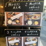 在築地的炭火烧烤店,上次因为大排长龙而放弃了。这次我在11:15到达,是第一位入座的顾客。当店开门时,队伍已经有大约20人左右,但服务员会在开门时就开始点餐。午餐定食每份1200日元:① 大金枪鱼腹部炭火烧烤定食(限量5份)② 大金枪鱼腹部炭火烧烤和刺身(最受欢迎的菜单)③ 三文鱼炭火烧烤和刺身④ 大山鸡炭火烧烤和小金枪鱼腹部其他还有本身近鱼腹部烧烤和本身近鱼中腹刺身,价格1600日元。上次来时,我点了最受欢迎的菜单中的限量5份的大金枪鱼腹部炭火烧烤定食,价格1200日元。味噌汤里有海苔、葱和油炸豆腐。大约5分钟后,大金枪鱼腹部炭火烧烤定食就上桌了。旁边的女士在我后面排队,点了大金枪鱼腹部炭火烧烤和刺身,所以我有机会看到她的大金枪鱼腹部,果然很大块。味噌汤里有海苔、葱和油炸豆腐。我挖出金枪鱼腹部周围的肉,慢慢享受。因为调味是甜辣的,所以米饭特别好吃。米饭可以续点,但光吃金枪鱼肉已经很饱了。因为大金枪鱼腹部炭火烧烤定食只有5份,所以如果想吃大份的话,建议在开店前15分钟到达。一旦限量食物卖完,大多数客人都会点大金枪鱼腹部炭火烧烤和刺身定食,但这份定食也非常令人满意。美味的一餐,谢谢。