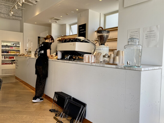 我以前并不知道自由が丘站附近有这家位于3楼的咖啡店。我在车站附近搜索了一家我从未去过的咖啡店。“3楼的建筑会不会感觉有些封闭?”我心里想着,但当我去了之后,发现这是一家明亮的店铺,还设有露台座位和大窗户。由于几乎都是吧台座位,所以如果想面对面坐着两个人以上可能会有点困难。今天我没吃东西,但收银台旁边摆放的胡萝卜蛋糕等看起来也很美味。如果想一个人悠闲地享受时光,我会再来的。也许,可能会稍微排队结账。