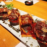 从上野站直达,位置明显,环境宽敞,适合悠闲用餐。内部有半私人包房供选择。我和朋友一起点了限量的厚切牛舌炖饭(1980日元)。牛肉非常嫩,搭配饭很美味,我们还加点了米饭^ ^ 最后,虽然不在菜单上,但服务员确认后加了一个鸡蛋,花了110日元。把牛舌放在饭上,再加上鸡蛋,味道更美味^ ^。