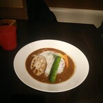 202211访问。星期五午餐13:20到达,被询问是否同意在后10分钟内点餐,我同意并入座。我之前已经注意到了咖喱,所以我点了它。很快,沙拉和汤就被端上来,沙拉很丰盛!非常美味。大约5分钟后,咖喱送来,里面有炸蔬菜和肉的味道,虽然菜单上写着辛辣,但并不觉得很辣。与其说是咖喱,更像是咖喱肉糜吧?非常美味的咖喱。顺便说一下,听说可以无限续饭,但第一份已经足够了。价格是含税的1000日元。咖啡好像可以自己去拿,我匆忙吃完就离开了,所以没有喝到。