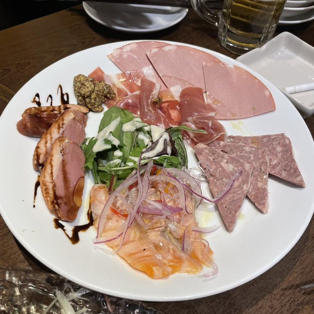 和高中同学久违地相聚了,我们是两位女性,食量都不大。这位朋友在餐饮行业工作,所以她选择了餐厅。位置在东急食品街,走到达ISO旁边的斜坡,然后左转。在左边。我的朋友喝酒很厉害,胃镜麻醉对她来说没有效果。虽然我最近不在家喝酒,但这次我喝了啤酒,然后她比我快1.5倍的速度喝掉了。我觉得我们会输掉AA制的账单...所以我们选择了这家看起来有美味牡蛎和肉的餐厅。但肉盛合和肉刺身是按两人份计算的。我们吃不了那么多。我不是特别喜欢牡蛎,但生牡蛎还是挺好吃的。所以我们点了生牡蛎和烤牛肉。我们以为前菜是沙拉,但实际上有更多的肉。后来我们点了一些白葡萄酒煮的深海鲍鱼,但我忘了拍照。最后是加点面包。因为有两小时的用餐限制,所以在最后一次点餐时,我们加点了一些热的东西,但我们实际上吃不了那么多。最后我们还点了一道烤香菇(好像是这个名字)。看到一些吃得多的男性觉得他们很幸福,但我们根本吃不下那种豪华的痛风锅。我们点了四杯啤酒,两杯果汁,每人一杯葡萄酒和一杯苏打水,大约每人6000日元。如果你想吃海鲜和肉的话,这个地方不错。感谢招待。渋谷Kairi相关排名:意大利菜|渋谷站,神泉站。