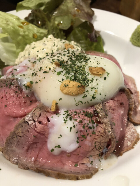 我去那家餐厅是因为想吃烤牛肉三明治,但进去后,猛然发现了什么?有生蚝吗?还是生的生蚝?而且,午餐时间价格还有点优惠吗?所以我点了一份烤牛肉饭和一份生蚝。嘿,嘿,嘿,这不是很棒吗?真好吃。先吃点生蚝,然后吃点沙拉,再来一份烤牛肉饭。这只要1300日元!太满足了!我一定会再来的!