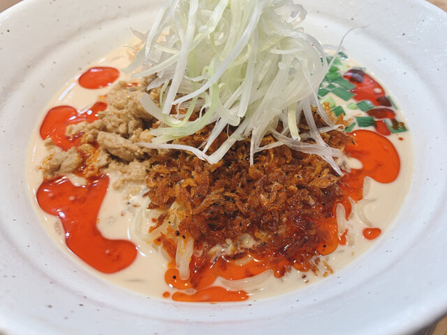 这家店很快就变得很受欢迎了呢。随便走进去就可以品尝到像高级中餐一样精致的担担面,所以这种受欢迎是理所当然的。推荐无汤担担面、四川风味担担面、洋葱烧卖和拌饭。上次我尝了浓郁虾仁担担面,这次选了四川风味的。同伴还是点了无汤担担面。虽然四川风味也很美味,但我个人更喜欢无汤担担面、浓郁虾仁担担面、四川风味担担面的顺序。烧卖也很好吃。收尾的拌饭是必点的。非常美味,感谢款待。